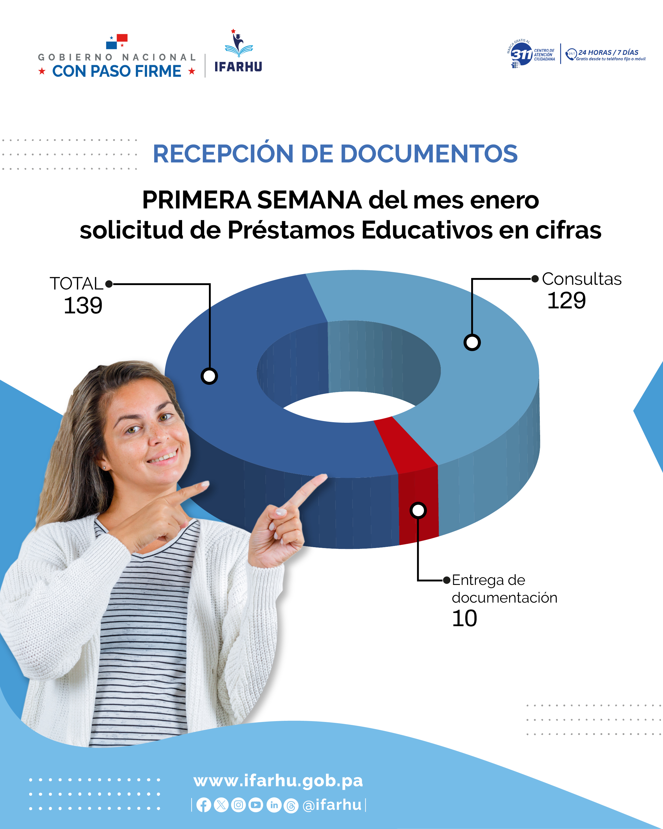 Un total de 139 consultas y solicitudes de nuevos préstamos educativos recibió la Dirección de Crédito Educativo del Instituto para la Formación y Aprovechamiento de Recursos Humanos (IFARHU), durante la primera semana de apertura del periodo de vigencia 2026.